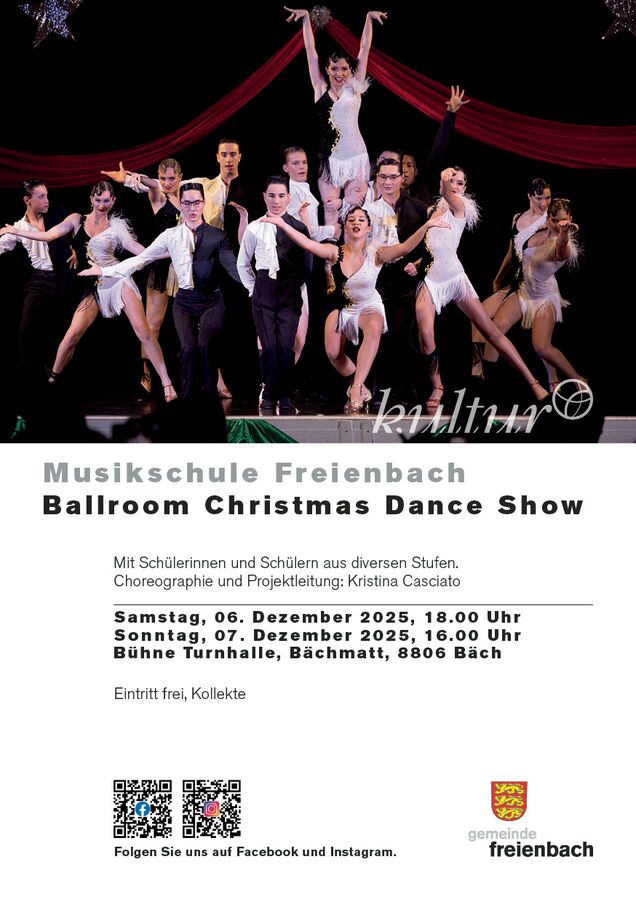 Am 6. und 7. Dezember 2025 findet die grossartige Weihnachtsshow der Ballroom-Klassen statt. Mit Schülerinnen und Schülern aus verschiedenen Stufen. Mit Hits aus den 90er Jahren. "Everybody dace now".